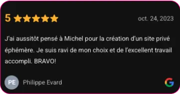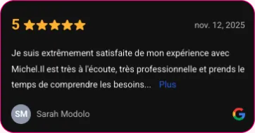 « Enfin, pas de jargon. Michel simplifie tout. J'ai arrêté de stresser pour mon classement Google et j'ai juste suivi la routine — mon téléphone a recommencé à sonner en 72 heures. »